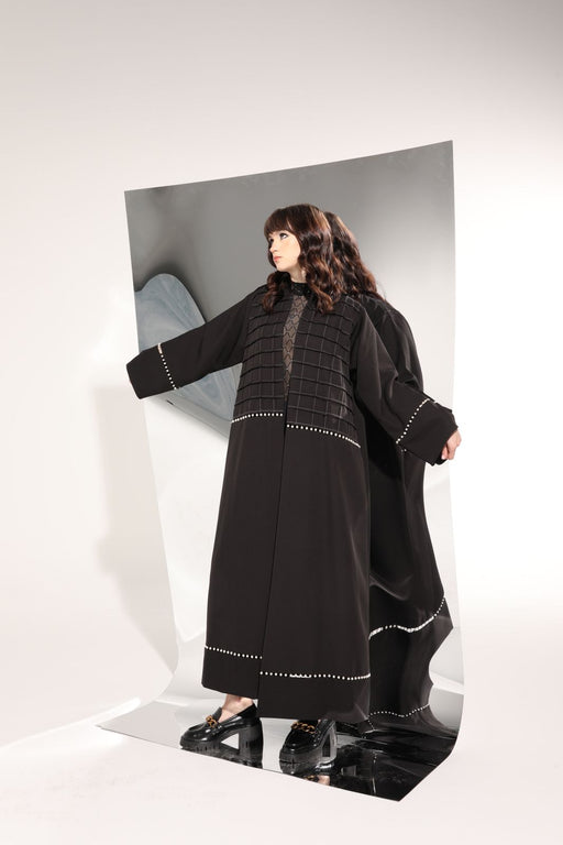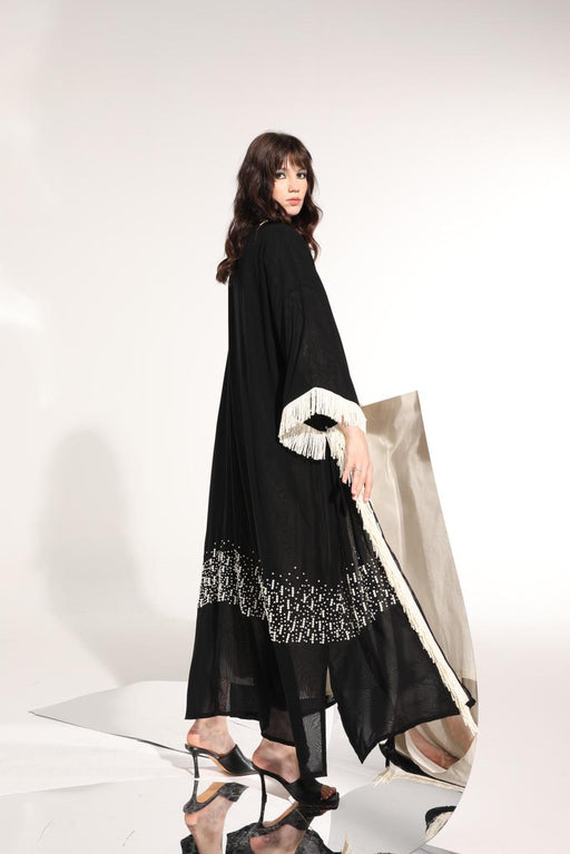 Pearl embellished black Abaya in crepe