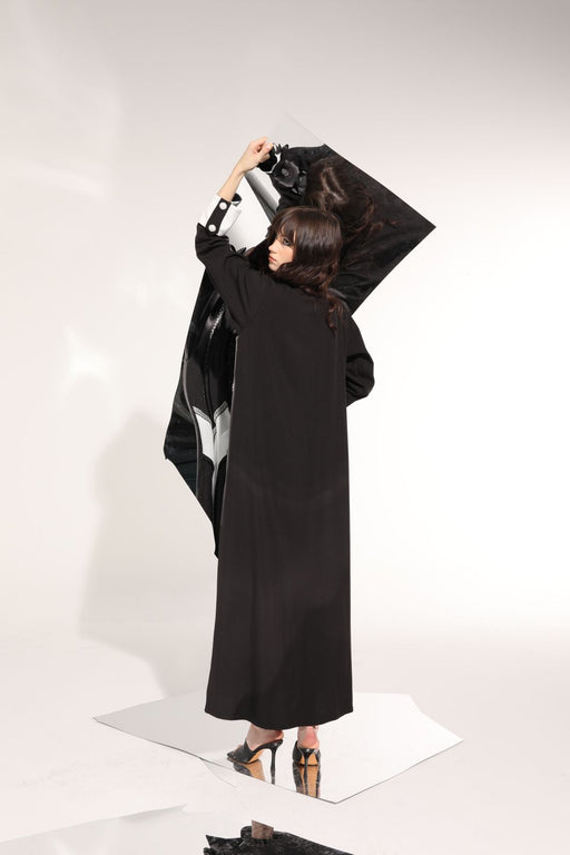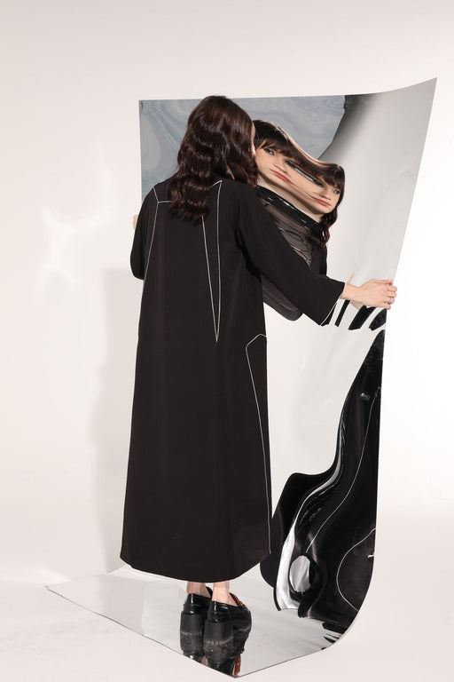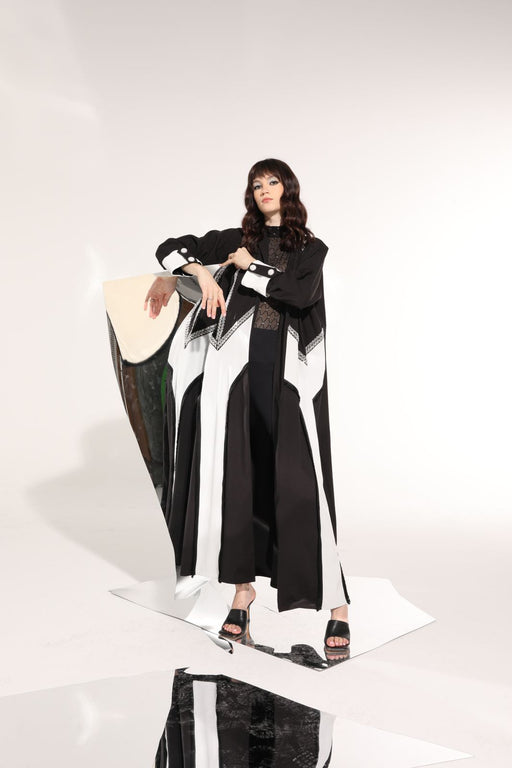 monochrome abaya with Colour block panels and sequins details.