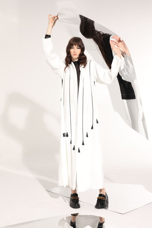 Tassel trimmed two tone abaya in crepe