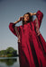 Whether styled with elegant heels and refined accessories or worn as a standout evening look, the Ruffle Crystal-Embellished Maroon Abaya brings timeless elegance and elevated glamour to your wardrobe.